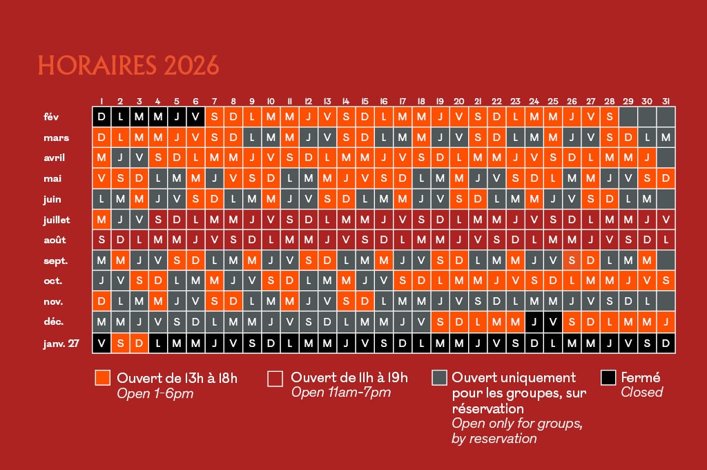 Ouvert tous les jours, de 13h à 18h (11h à 19h en été)